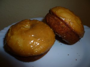 Imádom a mogyoróvajat, ezért mindig van itthon. Általában kenyérre kenve eszem, de szerintem sütiben is nagyon finom. Mint ahogy már készítettem is vele néhányszor mindenféle sütiket. Most éppen a fánk volt terítéken. 🙂 Ezt a receptet is egy amerikai oldalon találtam, csak a hozzávalókon változtattam egy kicsit. Mivel a mogyoróvajon kívül nincs benne semmilyen zsiradék, a tésztája kicsit morzsálódik, ezért szárazabbnak érezhetjük. És most jön a turpisság: a máz. A fánk állaga a máztól lesz tökéletes, megteremti a tökéletes egyensúlyt. Első harapásra azt gondoljuk, hű, de száraz, aztán a krémes állagú máz egyből feledteti az első gondolatunkat. 🙂 A mogyoróvaj és a juharszirup szerintem tökéletes páros, mindkettő kicsit füstös, és karakteres ízű, ezért egészen különleges ízélményben lesz részünk, ha megkóstoljuk ezt a fánkot.