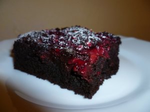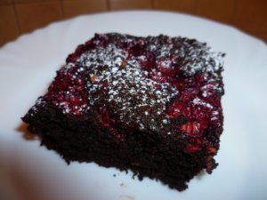 Az egész úgy kezdődött, hogy egyszer vittem kollégámnak Brownie-kóstolót. Eszegetés közben eszébe jutott, hogy még finomabb lenne málnával. 🙂 És a történet úgy folytatódik, hogy egyik szombaton unokaöcsém jött hozzánk látogatóba, és persze szereti a Brownie-t. Így nem volt kétséges, hogy mit süssek. Főleg, hogy a legutóbbi málnás süti készítésénél maradt egy kevés fagyasztott málna. Szóval, azon a szombaton még munka előtt gyorsan összedobtam. Nagy sikere volt, el is fogyott pillanatok alatt. 🙂 A Brownie-t szerintem nem kell bemutatnom, mindenki ismeri. Ami fontos, hogy ez a változat nem annyira ragacsos a közepén, inkább kissé krémes, és ez köszönhető a málnának is.