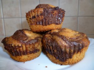 Először melegítsük elő a sütőt 215 fokra, a muffin sütőforma mélyedéseit béleljük ki muffin papírral. Keverjük habosra a tojásokat a margarinnal és a kétféle cukorral, keverjük bele az olajat, majd adjuk hozzá az előzőleg átszitált, sütőporral, sóval elkevert lisztet. Osszuk el a tészta felét a formákban, mindegyik tetejére tegyünk egy teáskanálnyi Nutellát, majd fedjük be őket a maradék tésztával. Hústűvel vagy egy kés hegyével enyhén keverjük össze a tésztát és a Nutellát, süssük 5 percig, majd vegyük le a hőmérsékletet 175 fokra, és így süssük tovább 15-20 percig.