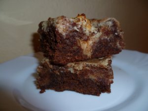 Nem túl csini, viszont isteni finom. 🙂 Kedves barátommal találkoztam, kérdeztem, milyen sütit enne. Először a kókuszkocka jutott eszébe, de aztán meglátta a blogon a banános-csokis Brownie-t, és végül e mellett döntött. Én pedig úgy gondoltam, kombinálom a két sütit, és ez lett belőle. 🙂 Nagy sikere volt! A Brownie ugye alapból krémes, mivel úgy az igazi, amikor még szinte nyers, a mascarpone a tetején pedig duplázza ezt a krémességet. Jaa, és igazi kalóriabomba, mert tömény és édes, kedves barátom szerint, egyszerre elég egy-két kockányi is belőle. Szóval, igazi kiadós süti, elég a családnak. 🙂