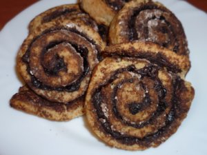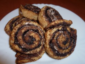 Nem gondoltam volna, hogy létezik finom és puha kakaós csiga élesztő nélkül. 🙂 Keresgéltem, találtam is sok “gyors kakaós csiga” receptet, de mindegyik kelesztéssel készült. Szóval, egyszer csak rátaláltam erre a receptre egy blogon, megsütöttem, és azt tapasztaltam, hogy valóban gyors, egyszerű és puha! (Annyit változtattam, hogy étolaj helyett kókuszolajat használtam.) Általában minden kelt tésztás sütiből hagyok másnapra is, hogy biztosan tudjam, puha marad-e. Ez ugye nem kelt, de az eredeti receptben azt írták, hogy másnap is puha. És tényleg! 🙂 Természetesen ennél a sütinél is kedvünkre variálhatjuk a tölteléket, kakaó helyett például fahéjjal, vagy amihez kedvünk van. Ami biztos, hogy legközelebb dupla adaggal sütök. 🙂
