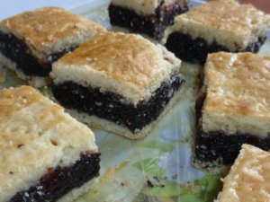 Kaviáros pite? Tette fel a kérdést legkedvesebb barátom, amikor még csak a sütiről készült fényképet látta. 🙂 És valóban, első ránézésre ennek is hihetnénk, de mivel nem szeretem a kaviárt, ez szóba sem jöhetett. 🙂 Viszont ismét egész napos rendezvényre készültünk, és legutóbb betáraztam mákból, ezért csak valamilyen mákos süti jöhetett szóba. Nem mellesleg, imádom a mákot, és legkedvesebb barátom is mákfüggő. 🙂 A pitét is imádjuk mindketten, viszont legutóbb, amikor mákos pitét sütöttem, meggyet tettem be. Most az volt az ötlet, hogy a meggyes-mákos töltelék helyett meggylekvárral kenjem meg a tésztát. Az ötlet bevált, a tészta belső oldala itt-ott egy kicsit átázott a lekvártól, ettől pedig extrán puha lett, a mákos töltelék pedig lágy és krémes. A sütinek nagy sikere volt, mert nagyon finom, szerintem én ezentúl csak így fogom sütni a mákos pitét. 🙂