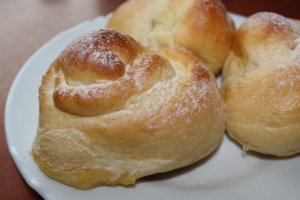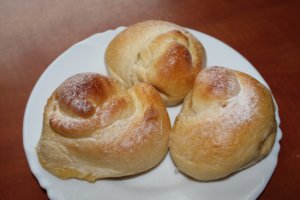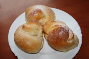Mostanában nem volt időm/lehetőségem sütni, de ezt az elmaradást hétvégén pótoltam. 🙂 Ahol dolgozom, van egy pékség, ott ettem először vanília pudinggal töltött brióst, és innen jött az ötlet. Már régóta terveztem, hogy kipróbálom, és erre egy hétvégi rendezvény apropója miatt került sor. Ez a recept, biztosan állíthatom, a tökéletes foszlós tészta receptje. 🙂 Bár az az igazság, hogy eddig mindig kézzel dagasztottam a kelt tésztákat, most robotgépet használtam, és most bebizonyosodott, hogy van különbség, mennyi ideig dagasztjuk a tésztát. Az én sütijeim nem pont briósnak néznek ki, így sikerült feltekernem őket. 🙂 Mivel pudinggal van töltve, nehezebb feltekerni, ugyanis megpróbál össze-vissza szétcsúszni. 🙂 De megéri kipróbálni, mert nagyon finom, és amelyiket kíváncsiságból félretettem másnapra, puha maradt, és egyáltalán nem száradt ki.
