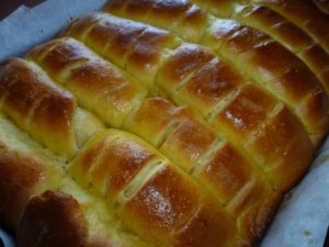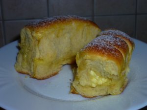 Már sütöttem többféle kelt tésztát, de buktát még soha. Természetesen ez sem bonyolult, mint ahogy először hittem, tulajdonképpen ugyanúgy kell készíteni, mint a többi kelt tésztát. Csak az arányok változnak. Ha összezsúfoljuk a tepsiben, akkor olyan magas sütik lesznek, mint az enyémek, de ha egyenként tesszük a tepsibe, kicsit távolabb egymástól, akkor széltében is tudnak nőni, így kevésbé érezzük úgy, hogy több a tészta, mint a töltelék. A tészta egyébként nagyon finom, puha, foszlós, mint egy kalácstészta. Szerintem nagyjából beillik kalácstésztának is. Az enyémek azért ilyen sárgásak, mert tanyasi tojást használok, és ezeknek nagyon szép narancssárga a sárgájuk. Kedves barátom viccesen megkérdezte, hogy curry-vel kentem-e meg őket? 🙂 Ezt az adagot próbának sütöttem, éppen ezért másnapra is hagytam belőle, hogy tudjam, másnap is ehető-e. És igen! 🙂 Az állaga semmit nem változott, nem száradt ki, ugyanolyan puha volt, mint előző nap.